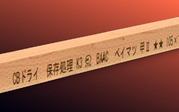 薬剤は、ヒ素、クロムを含まない水溶性薬剤「ACQ」を加圧注入しています。